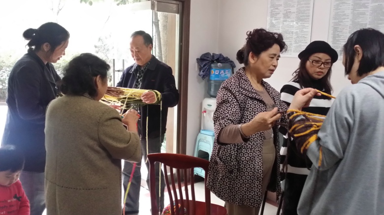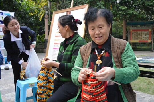 “我以前在江北织布厂上班,这么多年过去了,手艺还没有回潮!这个活动有意义!”天骄俊园82岁的黄婆婆听说是为山区小朋友献爱心,二话不说就挽起了线团,还不时指导旁边的邻居织围巾的针法。