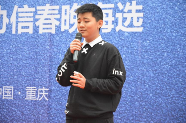 在海选现场,来自协信·TOWN城的沈子游大大方方地为大家献唱了一首《董小姐》,“爱上一匹野马,可我的家里没有草原;董小姐,你才不是一个没有故事的女同学”,清澈的嗓音、略显惆怅的歌词,这样的搭配让大家眼前一亮。虽然子游只有十几岁,小小年龄的他却是协信春晚的“老人”,前年就以一首英文歌唱到了重庆人民大礼堂。据子游妈妈介绍,小沈对音乐有很好的悟性,常常是听到一首好听的歌就会不由自主地跟着哼唱。因为他喜欢唱歌,在学校已小有名气,还常在校艺术节上获奖,已拥有不少同学粉丝,这首《董小姐》就是他平时最喜欢唱的一首歌。