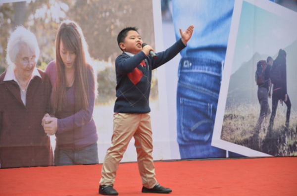 来自天骄俊园的何维希小朋友长得胖乎乎的特别可爱,小正太上场一亮嗓就震住了所有人,大方的台风,举手投足间颇有大腕儿风范,而清澈的童音唱着《妈妈的月亮船》也给大家带来了视听上的极致享受。待他下台后,笔者就“逮”住他进行了简短采访。何维希9岁,读小学四年级,在“红苹果”兴趣班学习普通声乐。“我还有个女同学也在现场,你采访她嘛。”原来,另一位参赛选手也是天骄俊园的业主,她演唱的《北京胡同》字正腔圆,也博得了大家的阵阵掌声。“你们还是组团来参赛呀。”笔者和他打趣道。最后两位同学愉快合影。