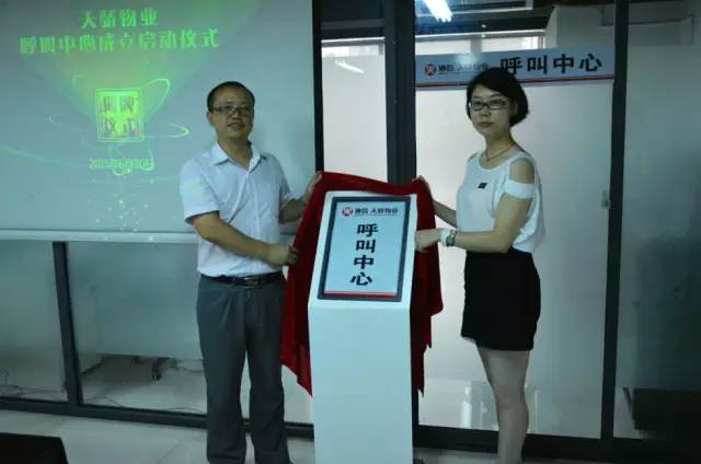 天骄物业副总经理吴书广(左)为呼叫中心揭牌