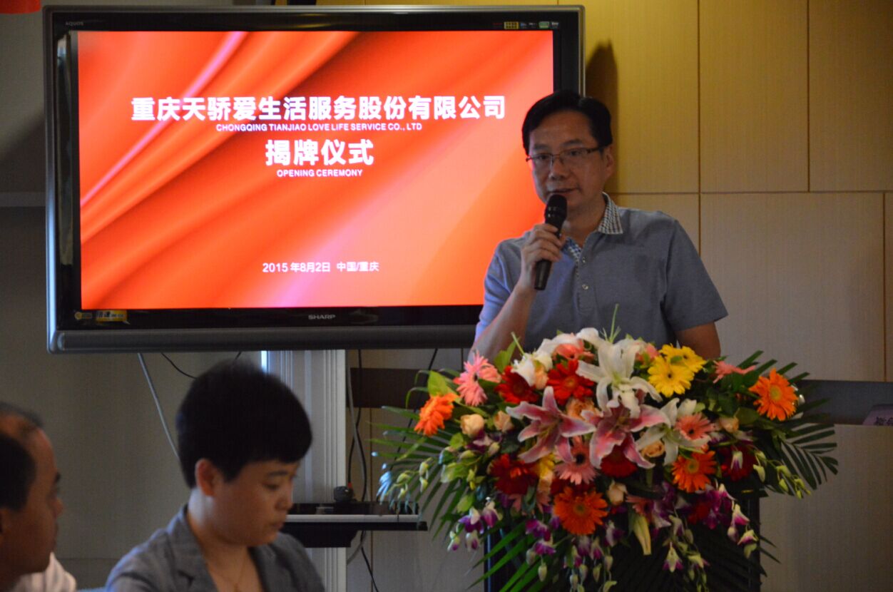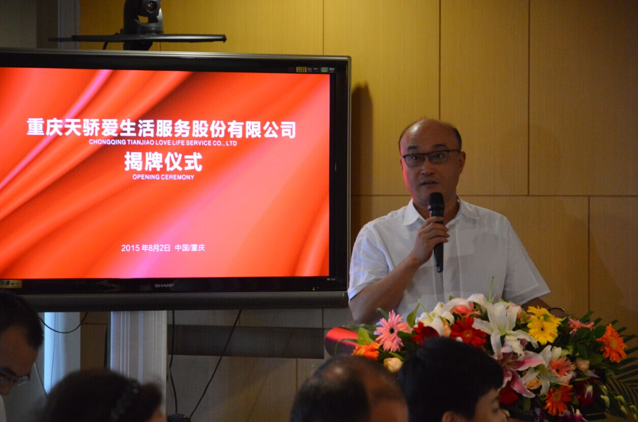 渝中区房管局陈全顺副局长致辞表示:今天阳光灿烂,是一个非常美好的日子,谨代表渝中区物业行业对重庆天骄爱生活服务股份有限公司成立表示最热烈的祝贺。天骄爱生活体现了改革的精神,开放的精神,体现了渝中区物业行业做大做强的理念,体现了改革的态度,在此祝愿天骄爱生活真正展示爱生活的人文本质,走得更远,今后更加红红火火。