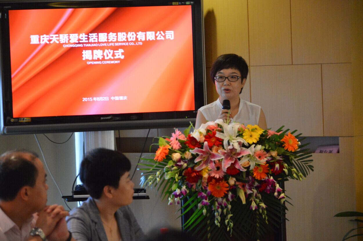 中午11时,重庆天骄爱生活服务股份有限公司揭牌仪式在重庆市观音桥协信中心举行。重庆国土房管局物业处、重庆市物业协会、渝中区物业协会、渝中区房管局领导,投资机构的嘉宾,协信合作伙伴,知名房地产与物业管理企业代表,重庆天骄爱生活服务股份有限公司董监事会成员、管理层,天骄物业全国各项目负责人共计二百余人参加了庆典仪式。