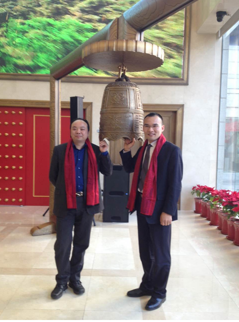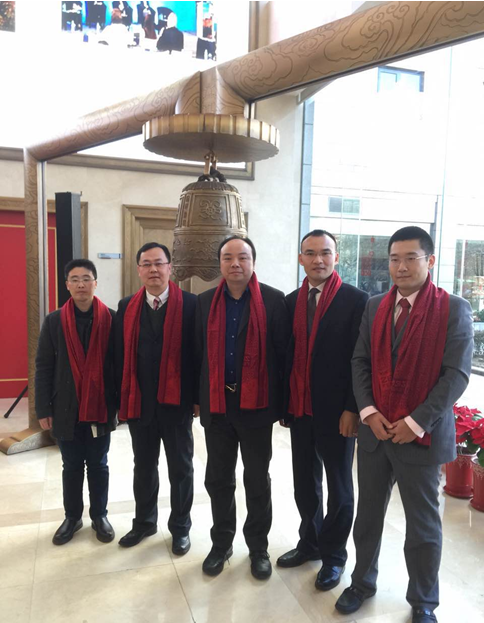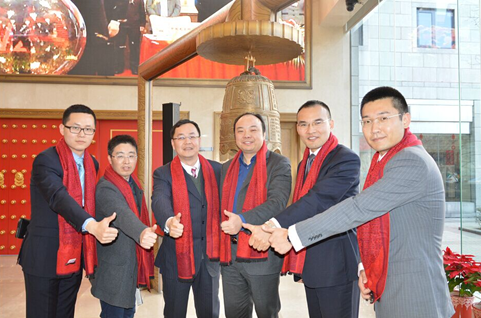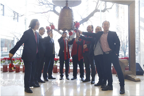 与会领导共同敲响象征上市的金钟