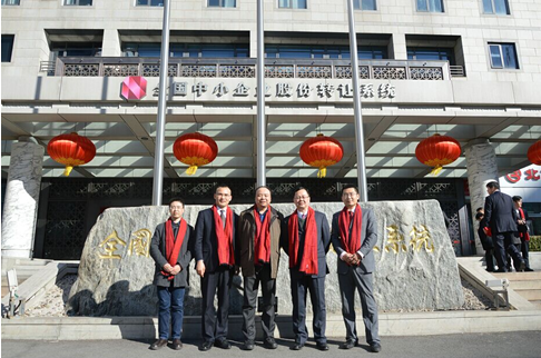 参加仪式的领导在全国中小企业股份转让系统中心大楼前合影