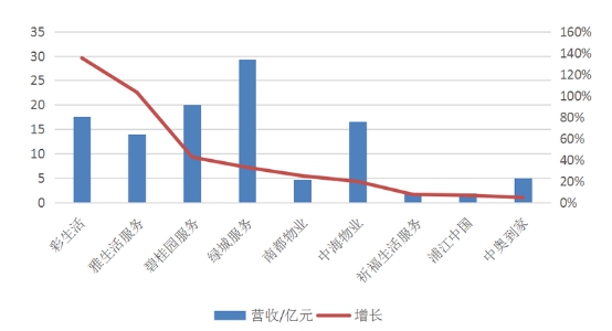 以碧桂园服务、彩生活、浦江中国、中海物业、中奥到家为代表的物企,70%以上的营收来自于物业管理服务,盈利增速重在扩张物业管理规模。